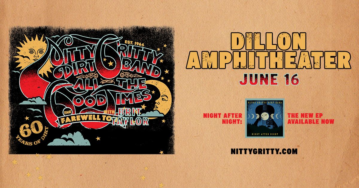 Nitty Gritty Dirt Band is bringing All the Good Times: The Farewell Tour – 60 Years of Dirt with special guest Brit Taylor to Dillon Amphitheater on Tuesday, June 16!